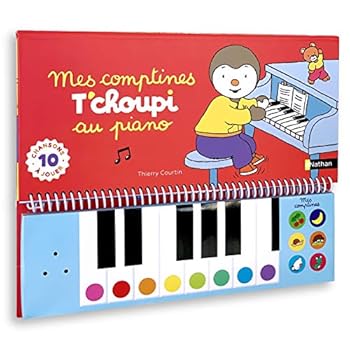 Apprends à jouer du piano avec T'choupi !Un livre-piano avec 8 notes (Do à do) pour jouer les 10 partitions de ses chansons préférées parmi : une souris verte, petit escargot, 1 2 3 nous irons au bois, Au clair de la lune, une poule sur un mur, Promenons-nous dans les bois... Et 6 comptines programmées à écouter ! Un livre piano musical pour les enfants dès 2 ans.